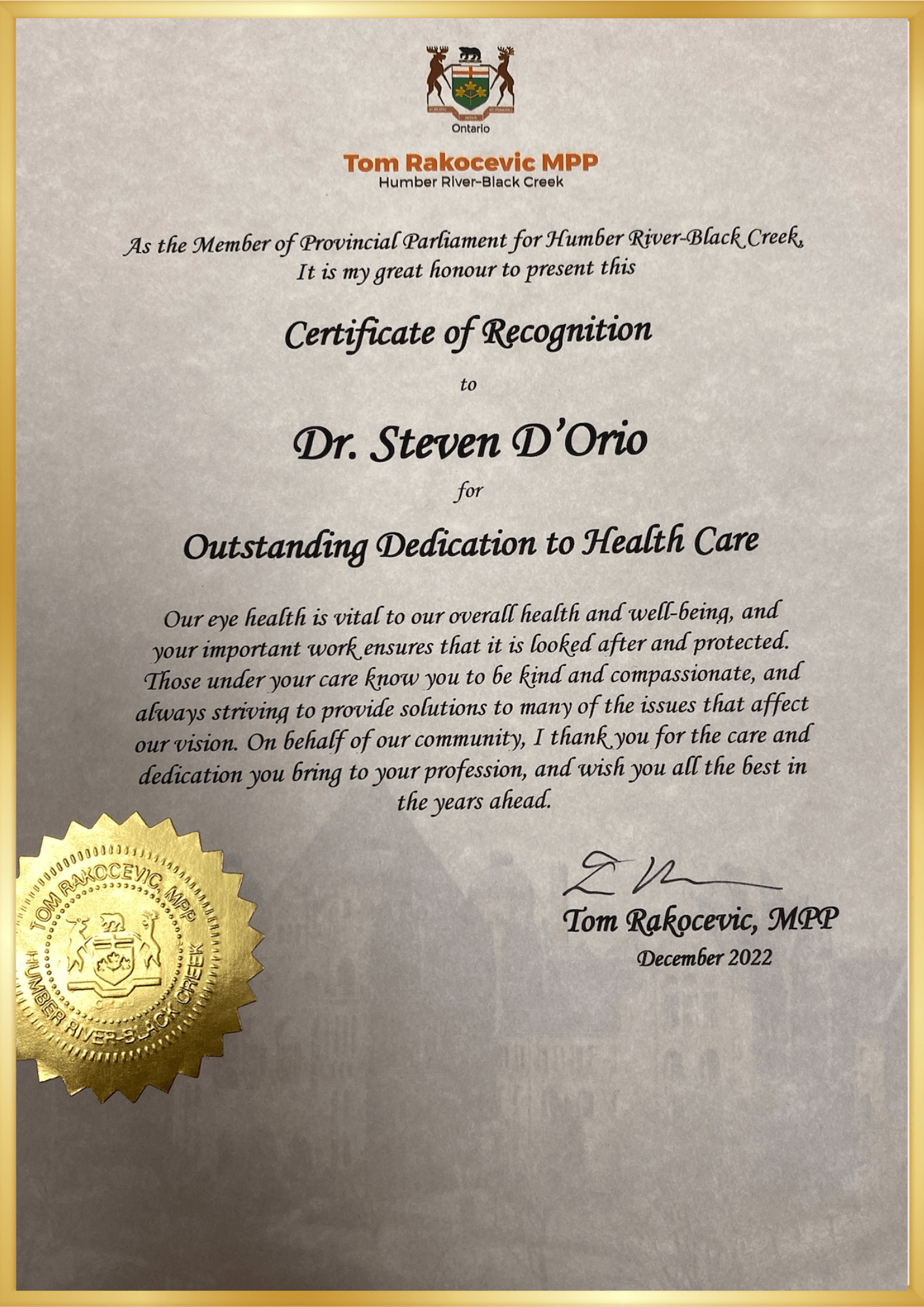 Dr. Greg D’Orio has been running his own practice for over 40 years and has built a reputation of being a caring, knowledgeable and trustworthy doctor. With the recent addition of his son to the family trade, both Dr. Greg D’Orio and Dr. Steven D’Orio seek to be the best eye doctor for the general population as they implement the newest services and technology to provide the best care possible. At Dr. D’Orio Eyecare + Associates we strive to be the best optometrist in Toronto, as well as the best optometrist in North York, as our two locations. Book an appointment with one of our optometrists in Toronto or North York today.