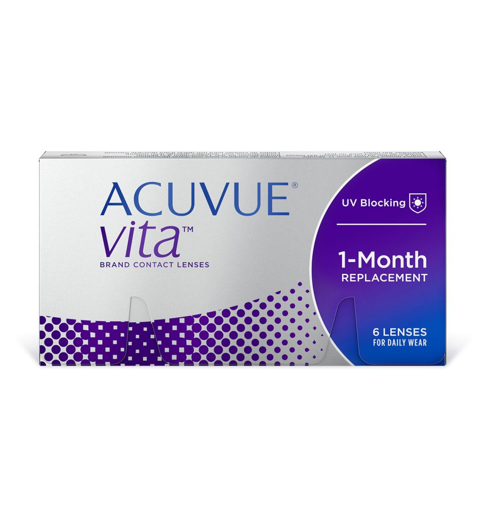 Acuvue brings you the revolutionary contact lens, Acuvue Vita. This monthly lens maximizes and maintains comfort all month long, even in challenging environments, thanks to its infinity edge design and HydraMax Technology. Plus, Vita uses UV blocking to protect your eyes from 93.4% of UVA and 99.8% of UVB rays.