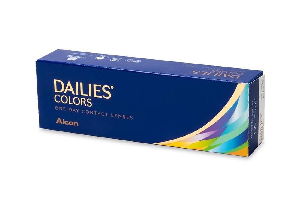 Get the vision care you need while expressing your unique sense of style with Alcon Dailies Colors 30 pack contact lenses. Available in four colors, including blue, hazel, grey, and green, they?ll enhance your eyes to make them appear bigger and brighter while ensuring natural-looking finish. Featuring Alcon?s signature 3-in1 Color Technology, the Dailies Colors contact lenses focus on bringing depth and definition to the eye?s inner ring, primary colour, and outer ring. Designed in partnership with celebrity makeup artist Patrick Ta, they allow you to have fun and experiment with your look while benefitting from a comfortable, everyday vision solution.