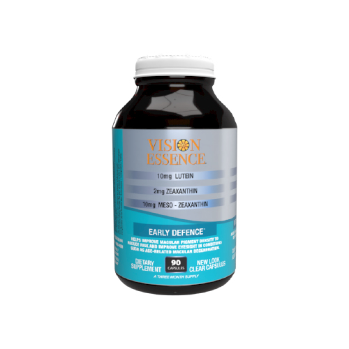 Vision Essence contains all three critical carotenoids: Meso-Zeaxanthin (10mg), Lutein (10mg) and Zeaxanthin (2mg).